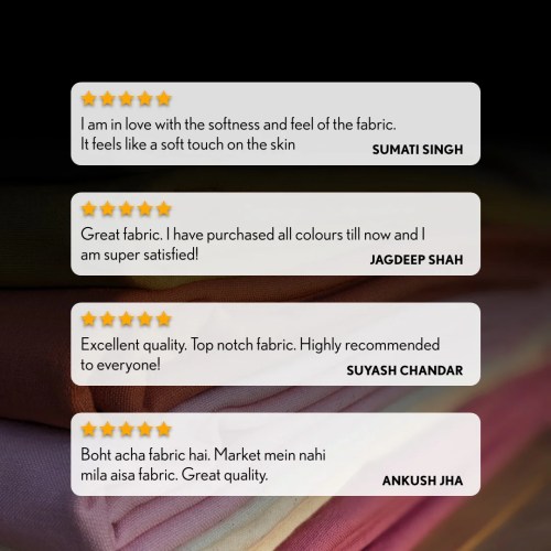 I wanted to make sure that I write this review as it is important that brands like you are promoted! I was skeptical at first, but I have really come to like your fabric after I received it few days back. As a retired army officer, I and my wife only prefer high quality items and try to order from made in india brands as much as we can, and yours sir is right there at one of our favourites now. I know I have only purchased it once, but very soon you will get more orders as I would need this fabric now for my two daughters who are at present in US, and I will ask them about which colour they want and then we can decide. Great work, Well done!